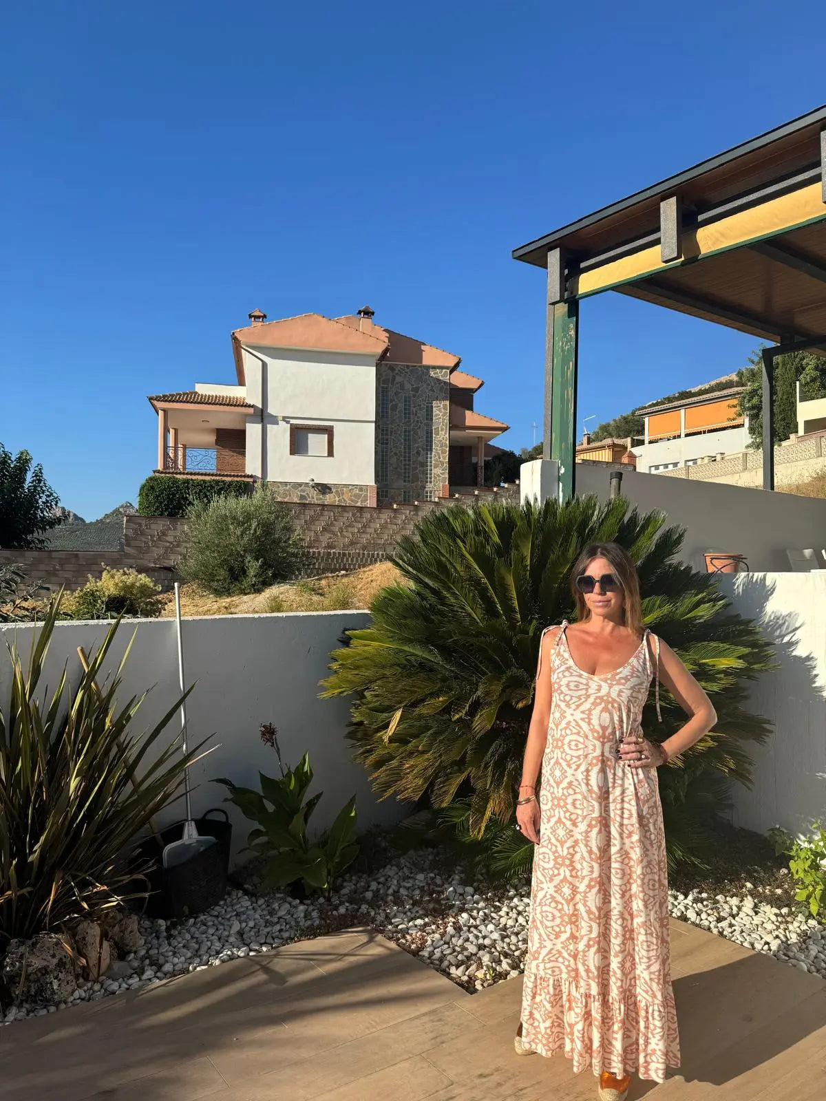 Vestido de tirantes con estampado geométrico, una opción ideal para quienes apuestan por un look con personalidad y comodidad. Su tejido ligero y corte fluido lo convierten en un imprescindible para los días cálidos. Los tirantes ajustables con lazada y el bajo ligeramente fruncido aportan el equilibrio perfecto entre estilo y libertad de movimiento.